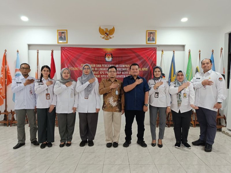 Komisi Pemilihan Umum (KPU) melaksanakan Pelantikan dan Pengambilan Sumpah/Janji Pejabat Fungsional Penata Kelola Pemilihan Umum di lingkungan Sekretariat Jenderal KPU, Sekretariat KPU Provinsi/KIP Aceh, serta Sekretariat KPU/KIP Kabupaten/Kota Tahun 2026. Kegiatan tersebut dilaksanakan secara daring dan luring pada Kamis (22/01/2026).