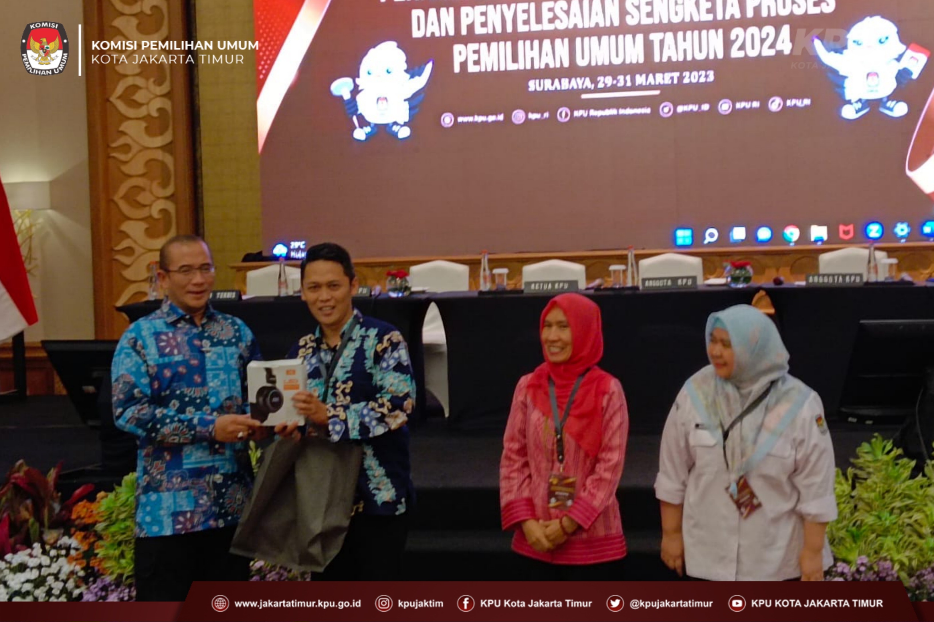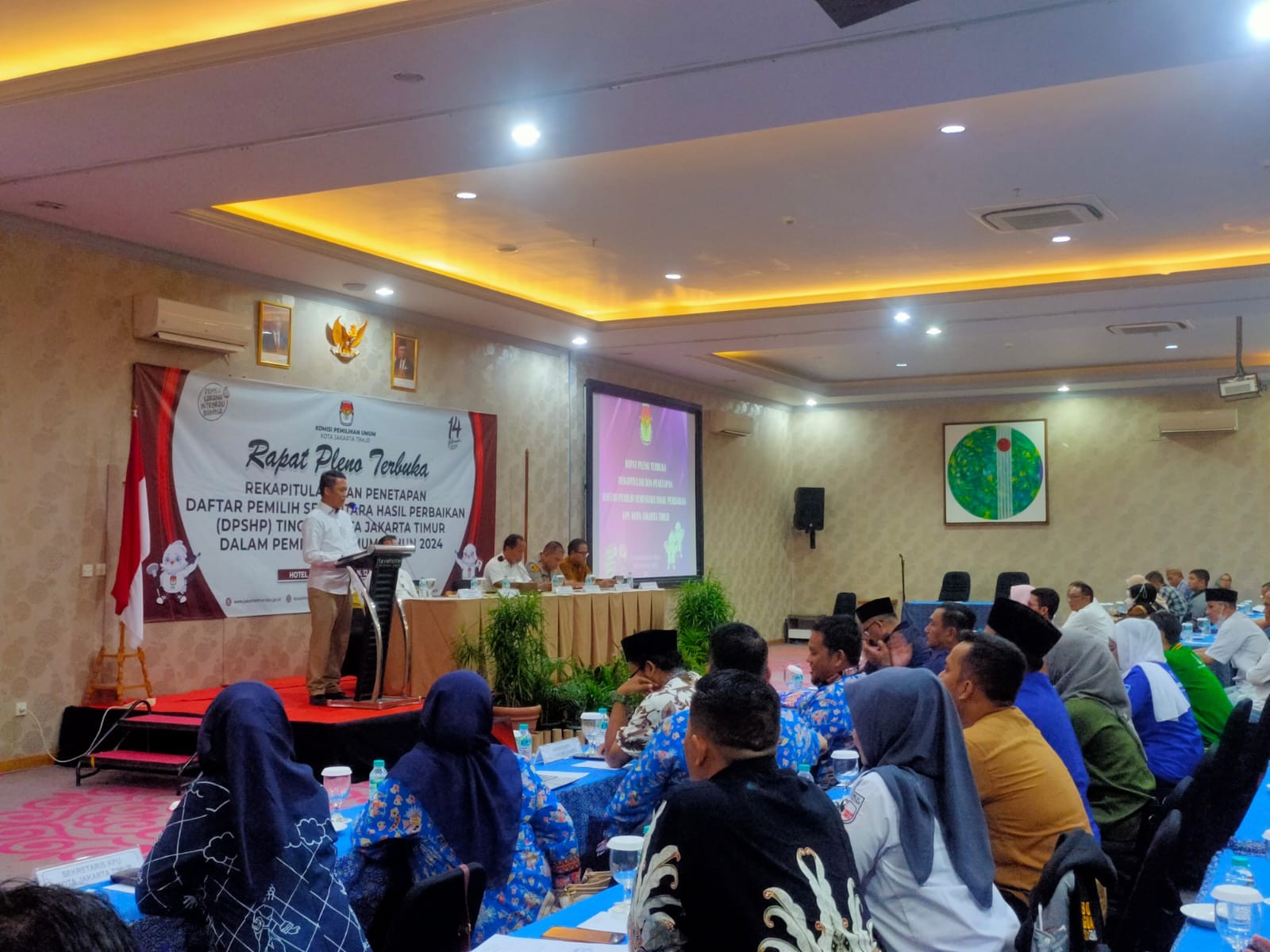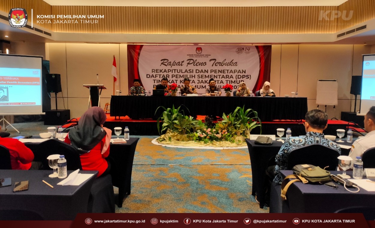 Jakarta – Kamis (05/04/24), KPU Kota Jakarta Timur menyelenggarakan Rapat Pleno Terbuka Rekapitulasi dan Penetapan Daftar Pemilih Sementara (DPS) Tingkat Kota Jakarta Timur Pemilihan Umum Tahun 2024. Rapat pleno terbuka ini diselenggarakan di Hotel Fieris, Rawamangun. Rapat Pleno Terbuka Rekapitulasi dan Penetapan DPS merupakan lanjutan dari tahapan Rekapitulasi Daftar Pemilih Sementara Hasil Pemutakhiran (DPSHP) di tingkat Kecamatan dan Kelurahan yang telah dilaksanakan beberapa waktu yang lalu. Rapat Pleno Terbuka ini dihadiri oleh Anggota KPU Provinsi DKI Jakarta, Ketua Bawaslu Provinsi DKI Jakarta, Ketua Bawaslu Kota Jakarta Timur, Partai Politik Peserta Pemilu 2024, dan para stakeholder di tingkat wilayah Kota Jakarta Timur yang meliputi Kesbangpol, Polres Metro, Dandim 0505, Sudin Dukcapil, Lapas/Rutan, serta Yayasan Disabilitas Indonesia dan Panti Sosial yang ada di wilayah Kota Jakarta Timur. Selain itu, rapat pleno ini juga diikuti oleh Anggota dan Sekretariat KPU Kota Jakarta Timur dan Panitia Pemilihan Kecamatan (PPK) se-Kota Jakarta Timur. Dalam sambutannya, Ketua KPU Kota Jakarta Timur, Wage Wardana, menyampaikan bahwa “KPU Kota Jakarta Timur merupakan wilayah yang sangat kondusif. Ditengah banyaknya potensi masalah, kita (dengan stakeholder) bisa bekerja sama dengan baik,” ujar Wage. Wage juga menambahkan bahwa rapat pleno ini bertujuan agar KPU Kota Jakarta Timur dapat menampilkan data pemilih yang akurat, mutakhir, dan aktual. Sehingga nantinya akan mewujudkan partisipasi masyarakat yang lebih baik dibandingkan dengan Pemilu sebelumnya. “Prinsipnya, kami bisa menampilkan data pemilih yang baik dan nantinya akan mencerminkan partisipasi masyarakat yang lebih baik lagi. Untuk demokrasi Indonesia semakin berkualitas” tambah Wage. Nurdin, Anggota KPU Provinsi DKI Jakarta, menyampaikan apresiasi kepada KPU Kota Jakarta Timur yang telah melakukan proses Rekapitulasi Daftar Pemilih Sementara (DPS) dan menjadi wilayah yang tercepat di Provinsi DKI Jakarta meski data pemilihnya terbesar. “Mudah-mudahan hasil yang nanti ditetapkan dalam DPS ini menghasilkan data pemilih yang akurat, mutakhir, aktual, dan komprehensif,” ujar Nurdin. Dalam rapat pleno ini, Nurdin juga berterima kasih kepada penyelenggara pemilu di tingkat bawah yaitu PPK, PPS, dan Pantarlih yang sudah menjadi garda terdepan untuk menyukseskan Pemilu tahun 2024. Rapat Pleno Terbuka Rekapitulasi dan Penetapan DPS ini bertujuan untuk menerima masukan dari masyarakat. Tedi Kurnia selaku Anggota KPU Kota Jakarta Timur divisi Perencanaan, Data, dan Informasi senantiasa mengingatkan forum untuk mensosialisasikan pengecekan daftar pemilih di cekdptonline.kpu.go.id kepada masyarakat. “Jika ada pemilih yang belum terdaftar di cek DPT online, sampaikan ke kami. Agar segera kami eksekusi,” kata Tedi. Di penghujung rapat pleno terbuka, Wage Wardana menetapkan Hasil Rekapitulasi dan Penetapan DPS Tingkat Kota Jakarta Timur Pemilihan Umum Tahun 2024 dengan jumlah TPS sebanyak 8.807 dan pemilih sebanyak 2.394.212 orang. -hes
